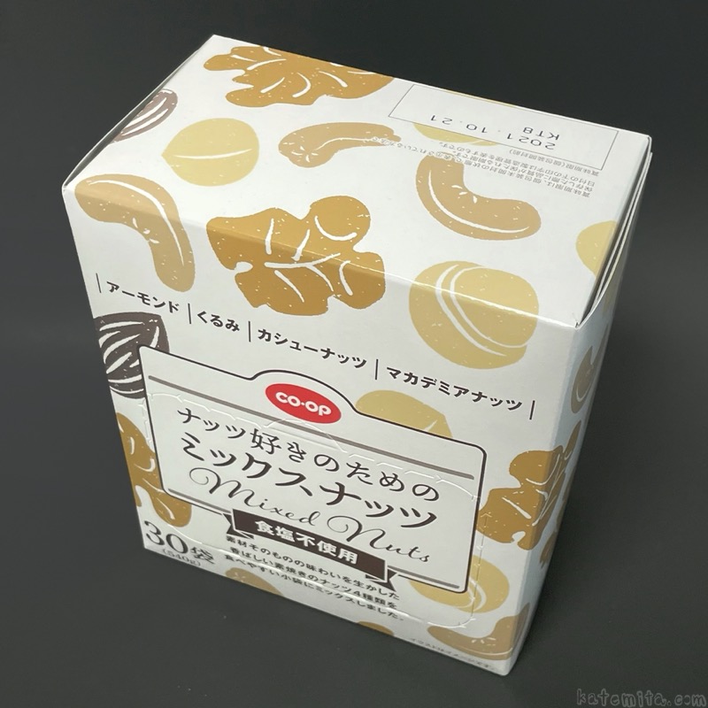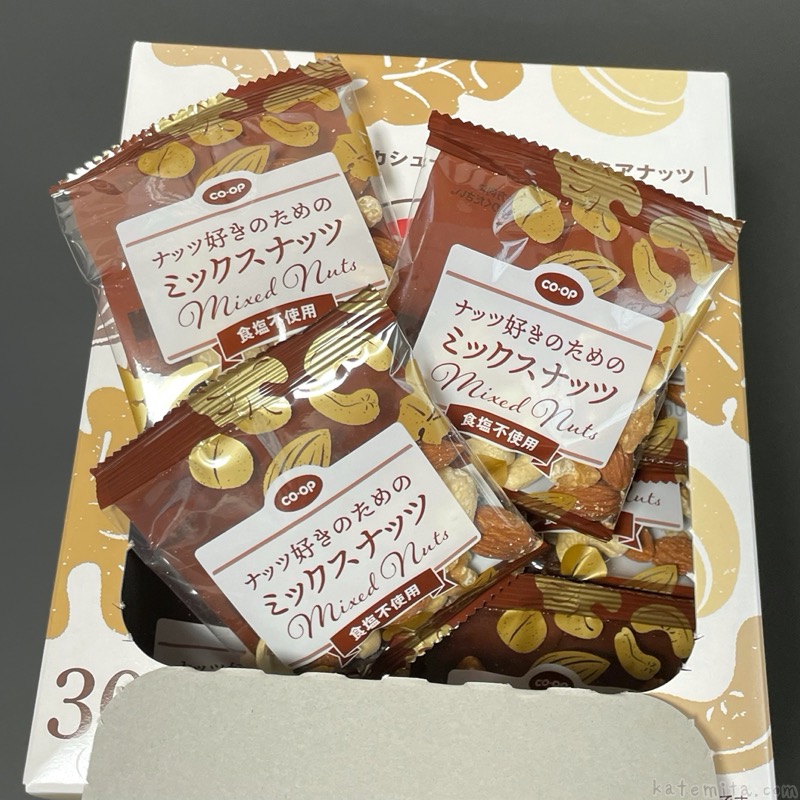 コープの『ナッツ好きのためのミックスナッツ(食塩不使用)30袋』が食べきりサイズで4種類のナッツが入って美味しい!