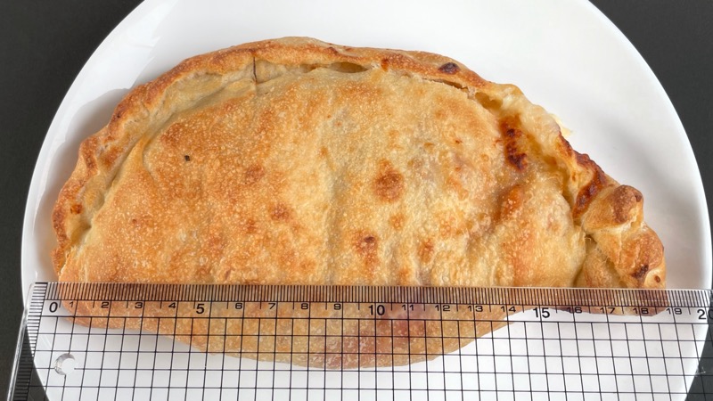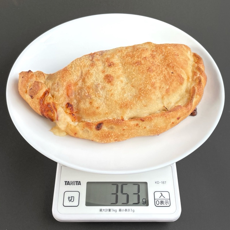 半円の形で、ピザ生地のような生地で包まれています。