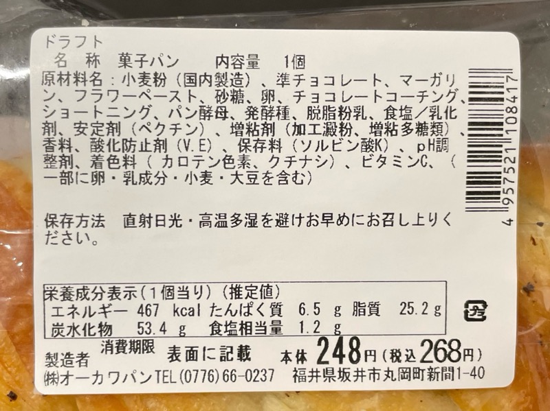オーカワパンの『ドラフト』がデニッシュ生地とチョコの菓子パンで美味しい!