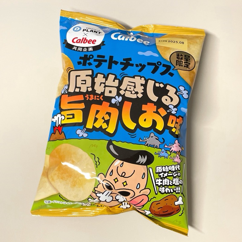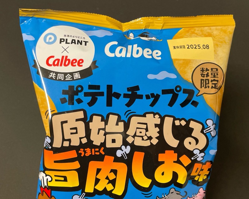 プラントの『ポテトチップス 原始感じる旨肉しお味』がカルビーとのコラボのポテチで美味しい