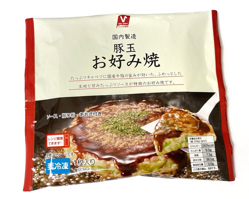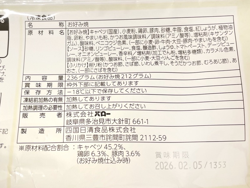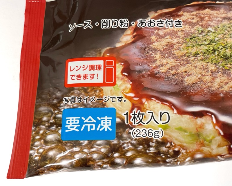 バローの冷凍食品『豚玉 お好み焼』がソースとあおさ付きで美味しい!