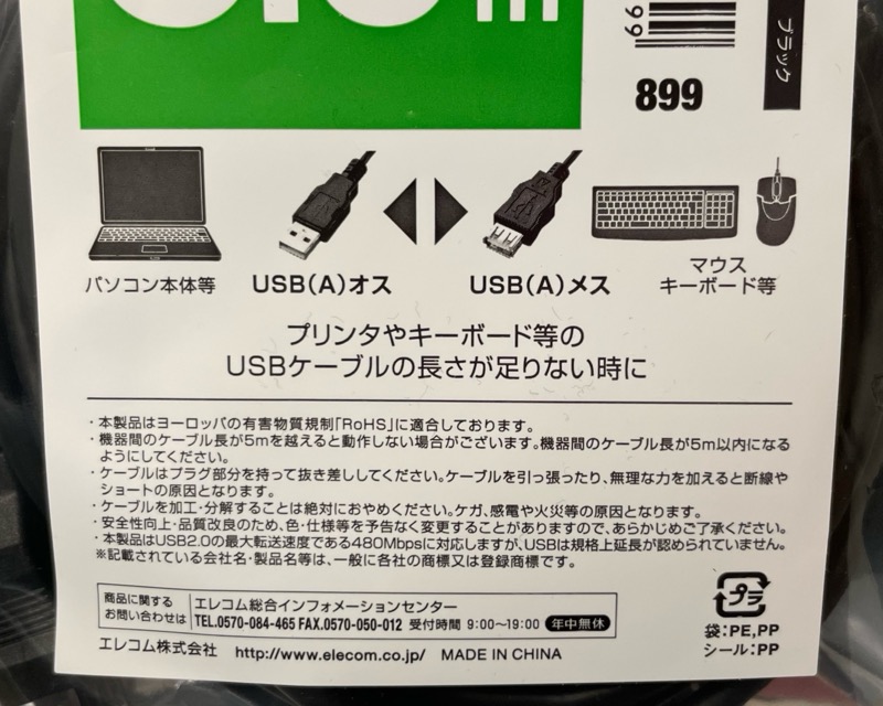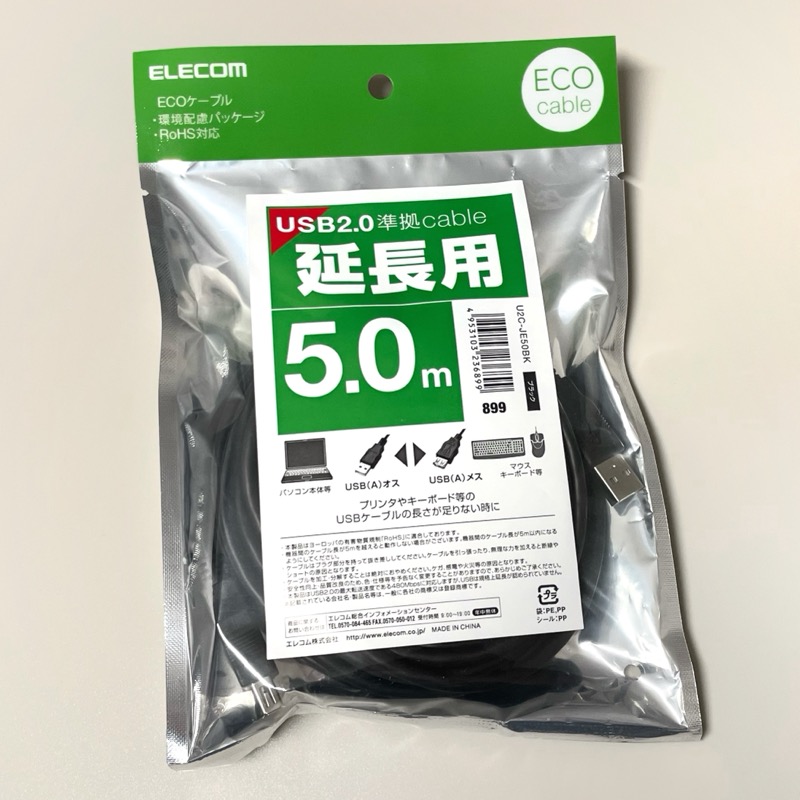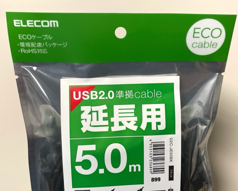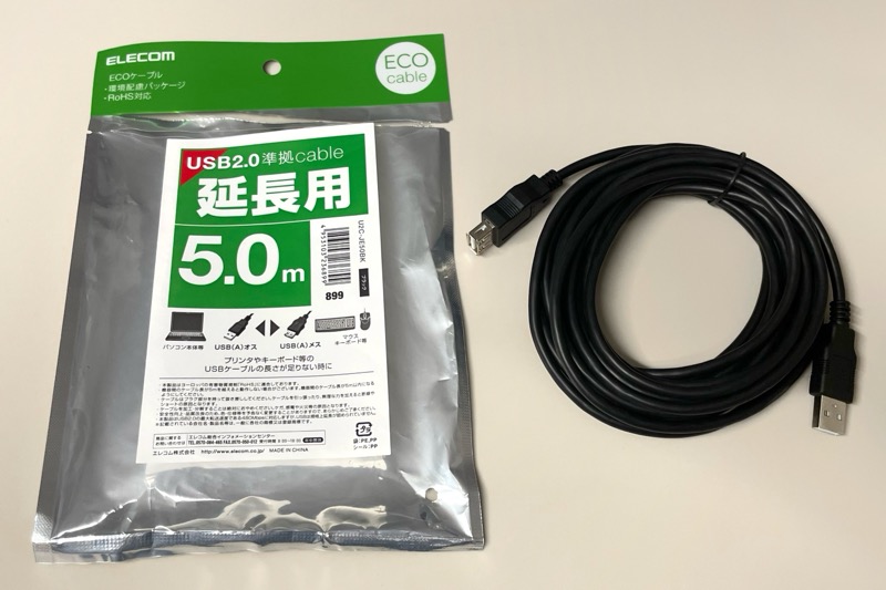 エレコムの『データ転送用 USB延長ケーブル USB2.0 Aオス-Aメスタイプ 5m』が長くて安くて便利!