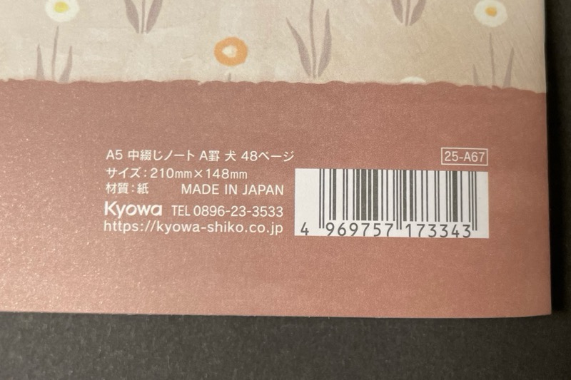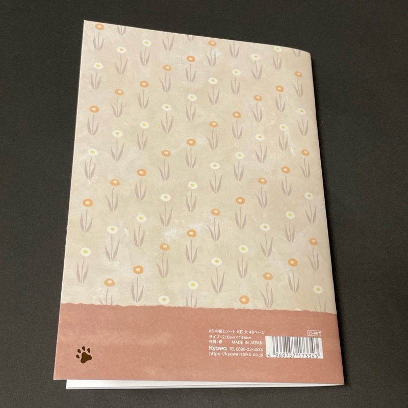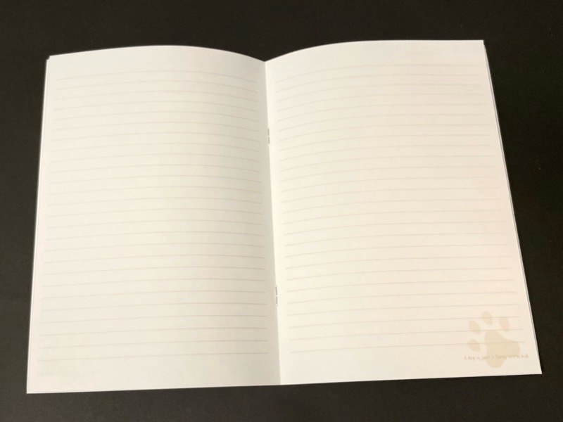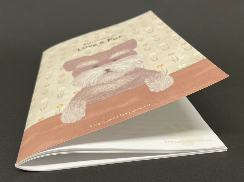 100均の『A5 中綴じノート A罫 犬 48P』がシュナウザーの表紙と犬の足跡デザインで可愛い!