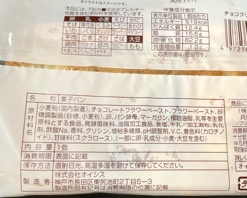 オイシスの『チョコクリームブレッド』が2つの味が交互に入って美味しい!