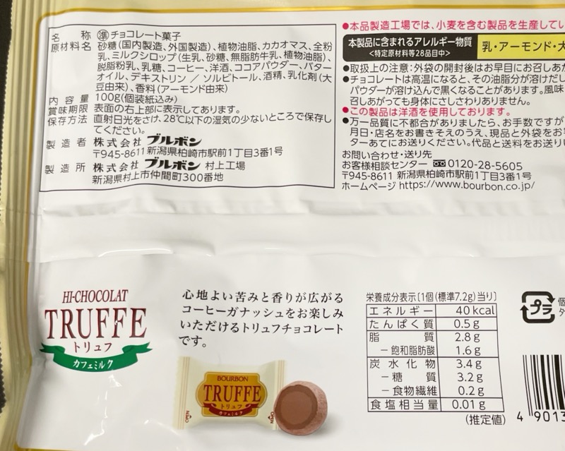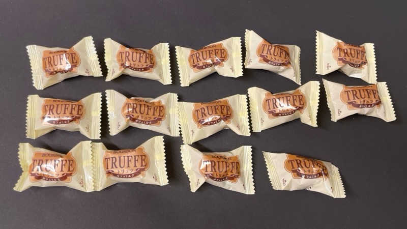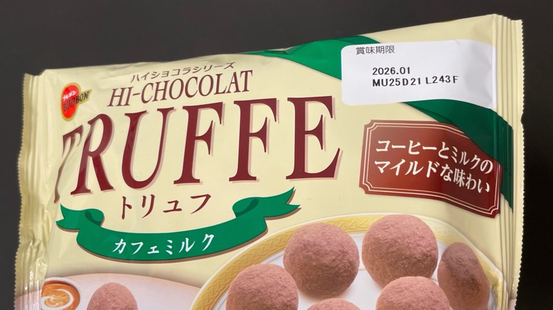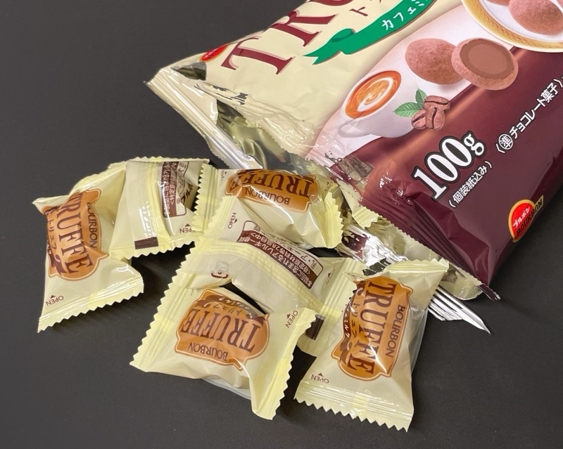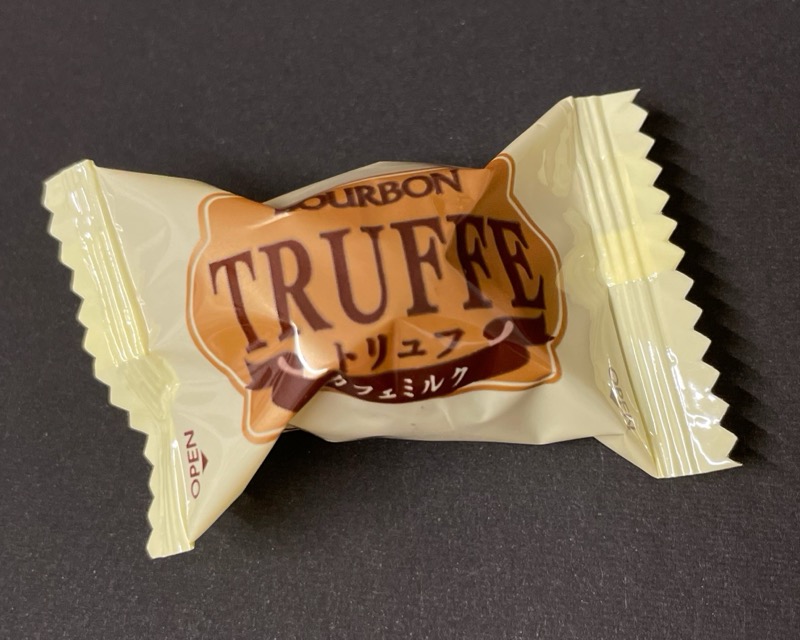 ブルボンの『トリュフカフェミルク』が中になめらかなチョコが入って美味しい!