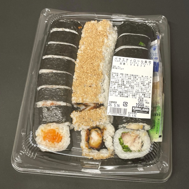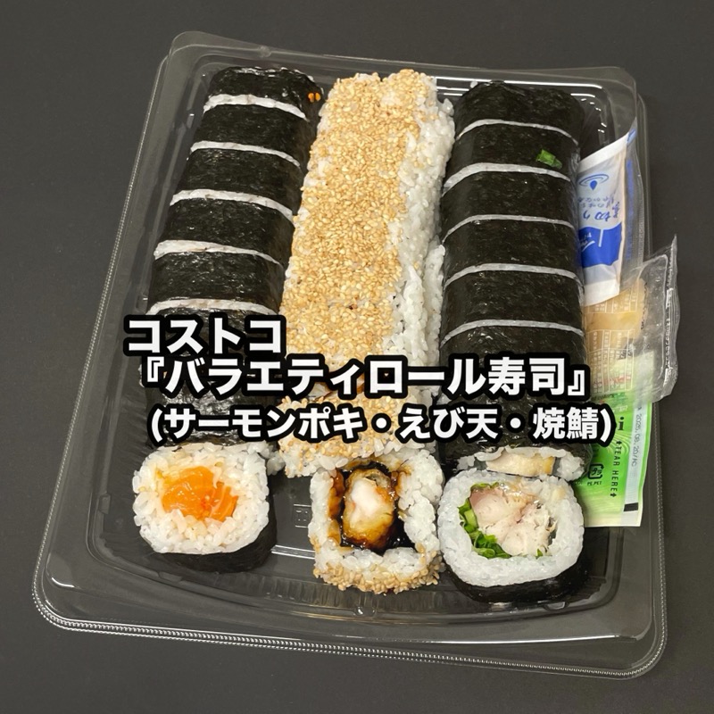 コストコの『バラエティロール寿司(サーモンポキ・えび天・焼鯖)』が3種類の巻き寿司で美味しい!