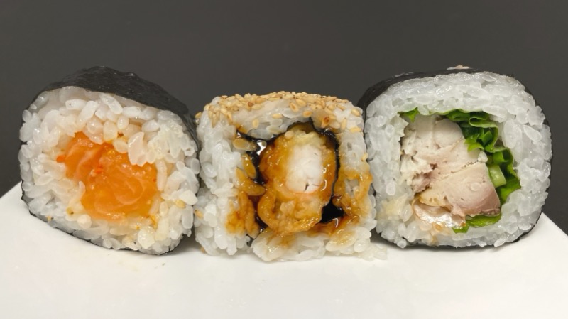 バラエティロール寿司(サーモンポキ・えび天・焼鯖)