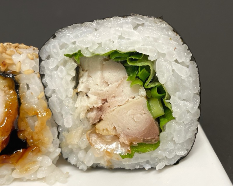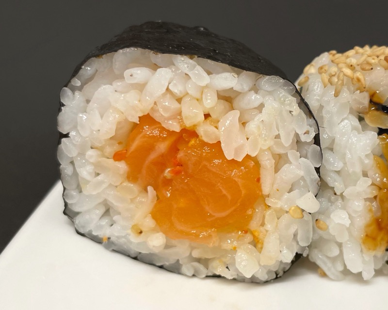 少しのピリ辛感のあるサーモンポキの巻き寿司と、