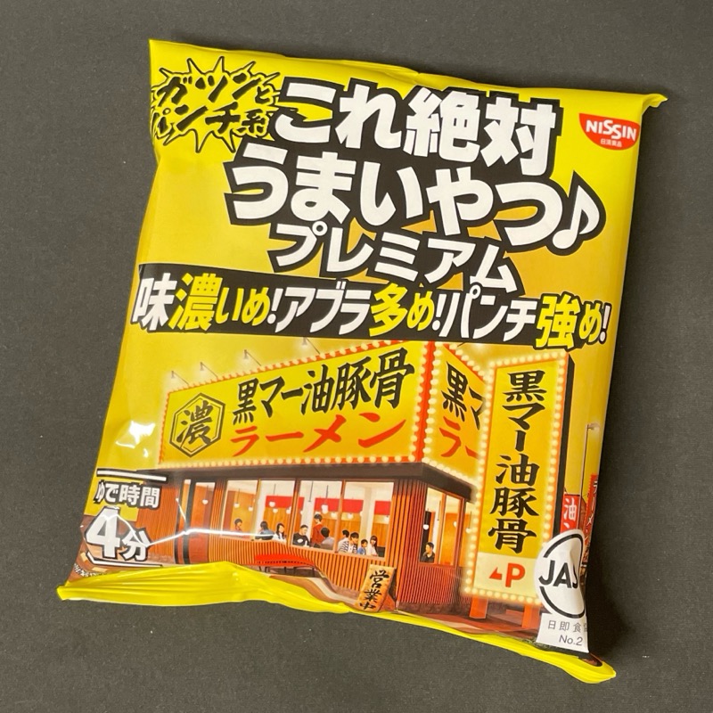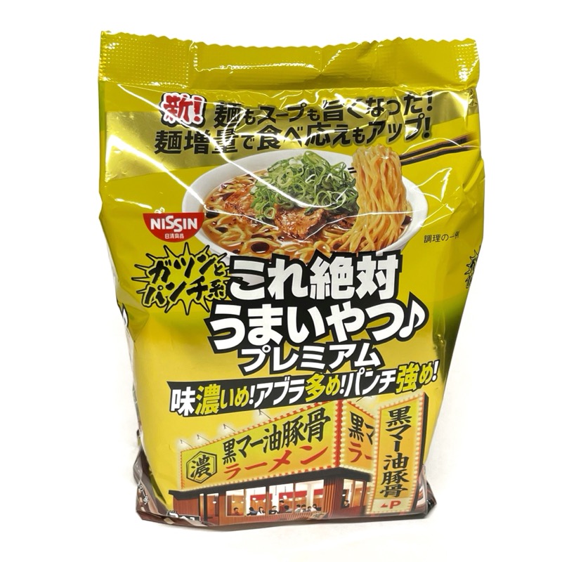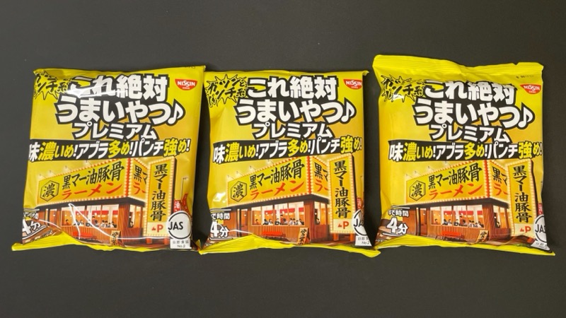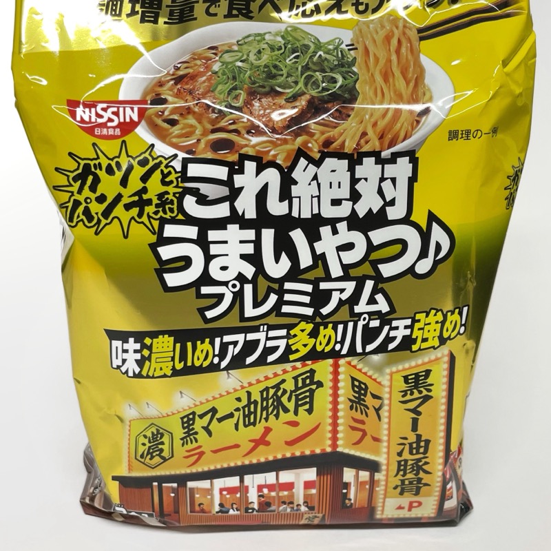 『日清これ絶対うまいやつ♪ プレミアム 黒マー油豚骨 3食パック』です。