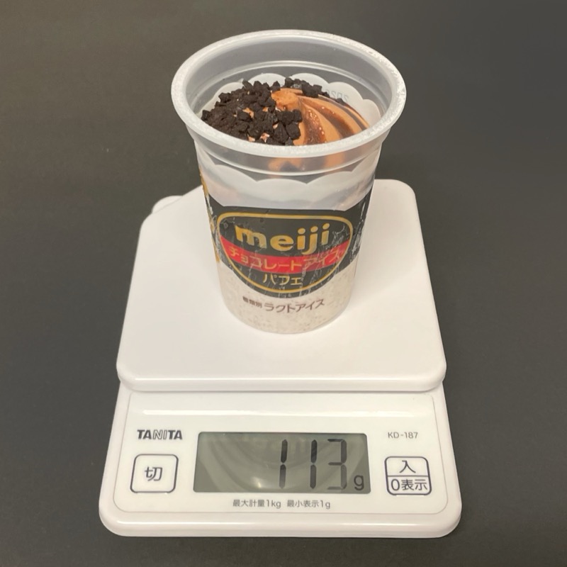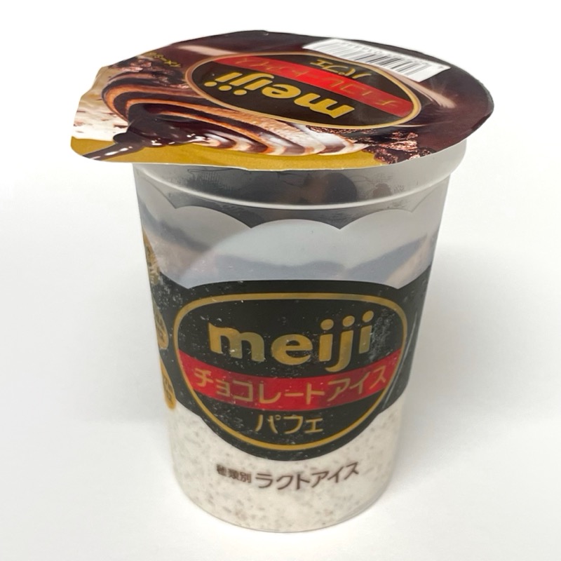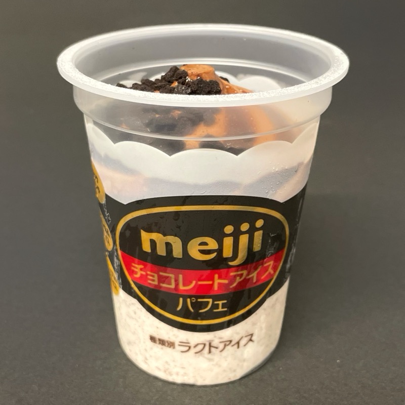 明治の『チョコレートアイス パフェ 185ml』がチョコソースとチョコアイスにチョコチップ入りバニラアイスの層で美味しい!