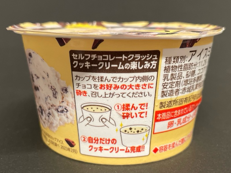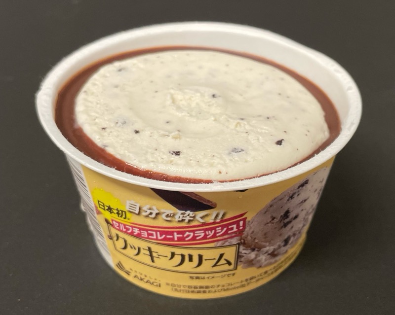 赤城乳業の『セルフチョコレートクラッシュ! クッキークリーム(カップ)』がパリパリ甘くて美味しい!