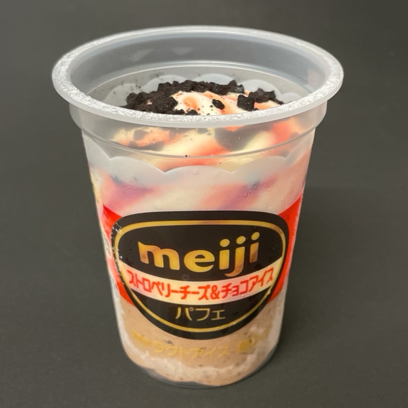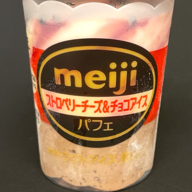明治の『ストロベリーチーズ&チョコアイス パフェ 185ml』がチーズ風味の爽やかな甘さとチョコで美味しい!