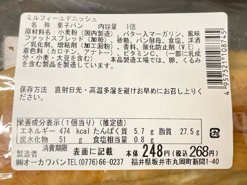 オーカワパンの『ミルフィーユデニッシュ』がサクサク甘くて美味しい。