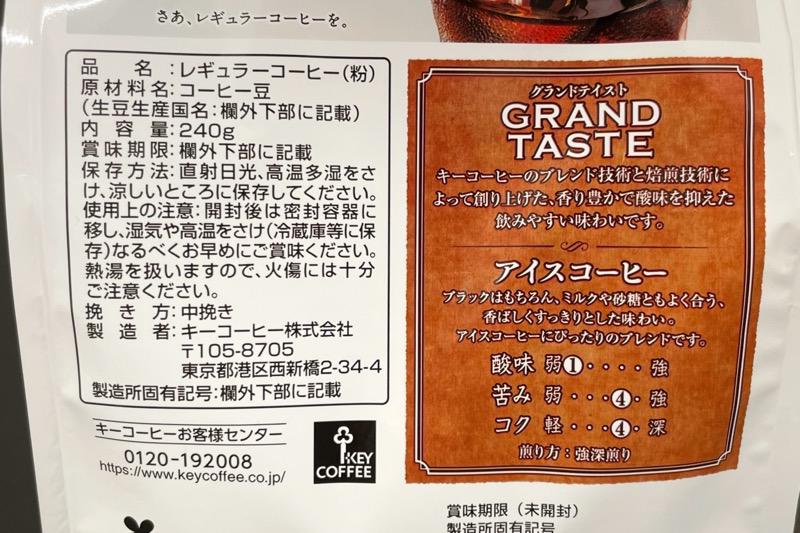 キーコーヒーの『グランドテイスト アイスコーヒー 240g』が粉コーヒーで淹れて冷やして美味しい!