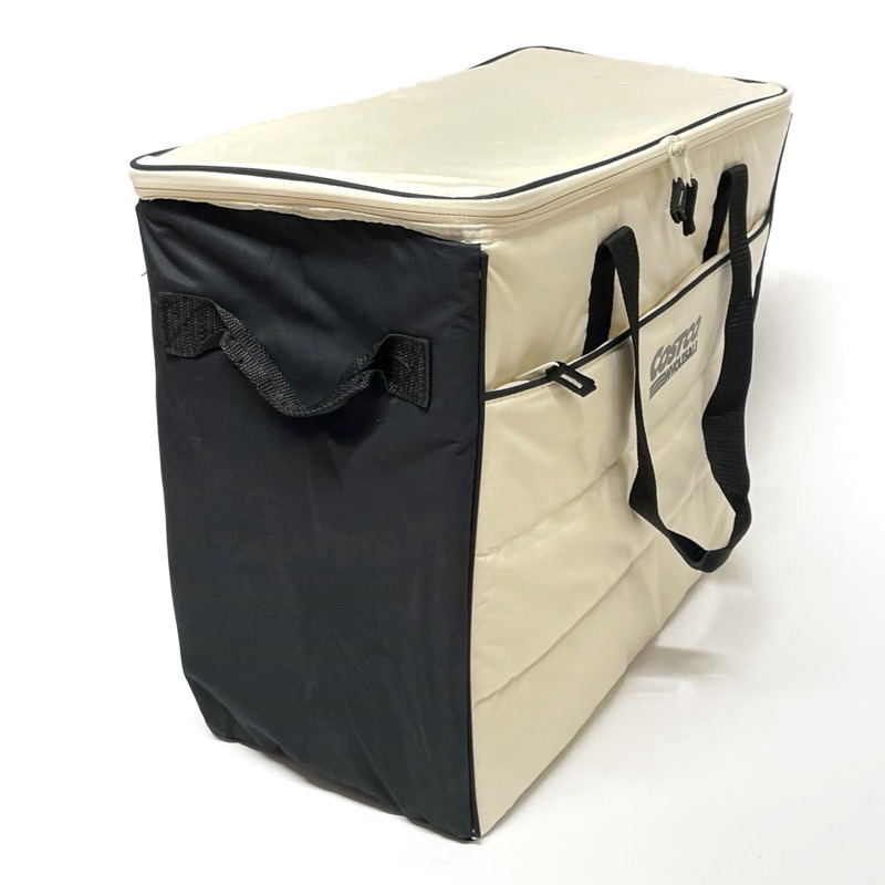 コストコの『クーラーバッグ キルト生地』が大きな高密度断熱材の白黒バッグでポケットもある!