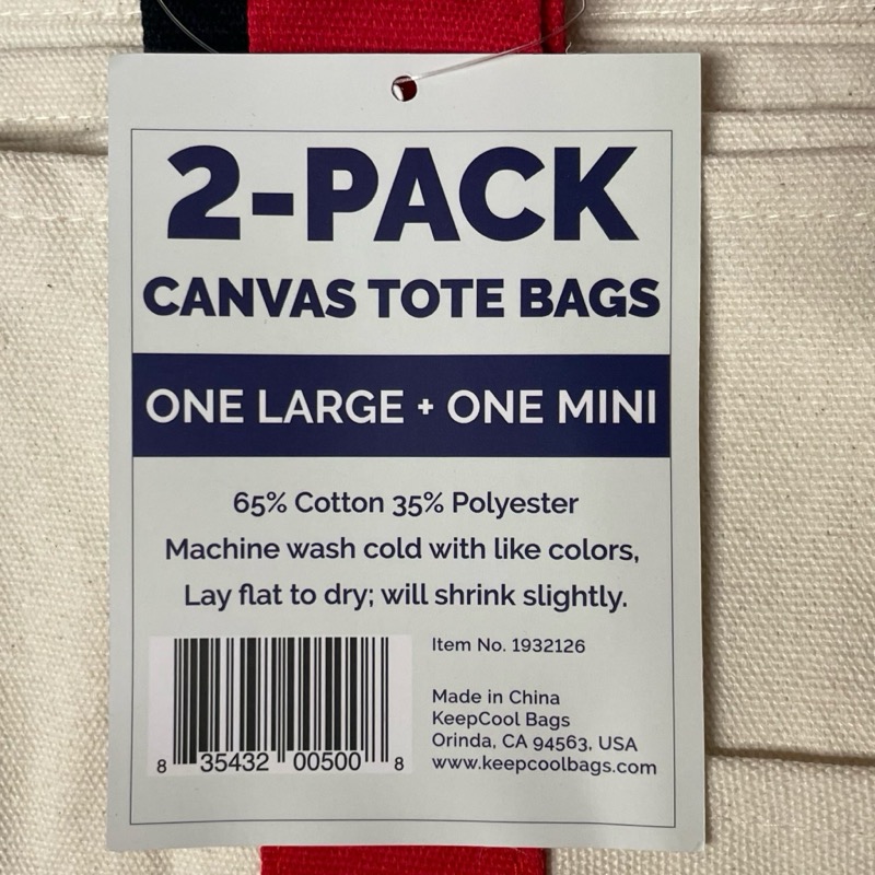 コストコの『キャンバス トートバッグ 2個セット』がネイビーとレッドで可愛い!