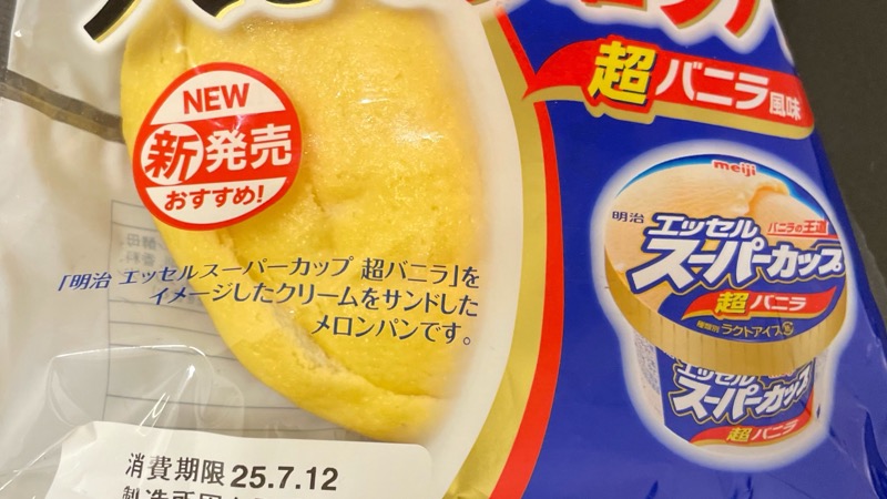 ヤマザキの『大きなメロンパン(エッセルスーパーカップ超バニラ風味)』が明治とのコラボ菓子パンで美味しい!