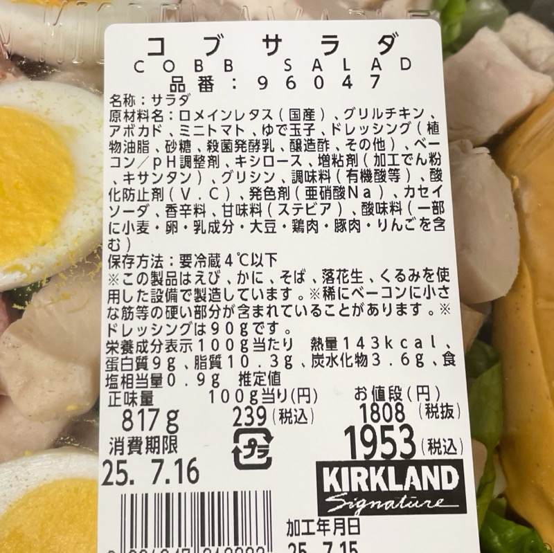 コストコの『コブサラダ』がアボカド、チキン、ベーコンが乗って美味しい!