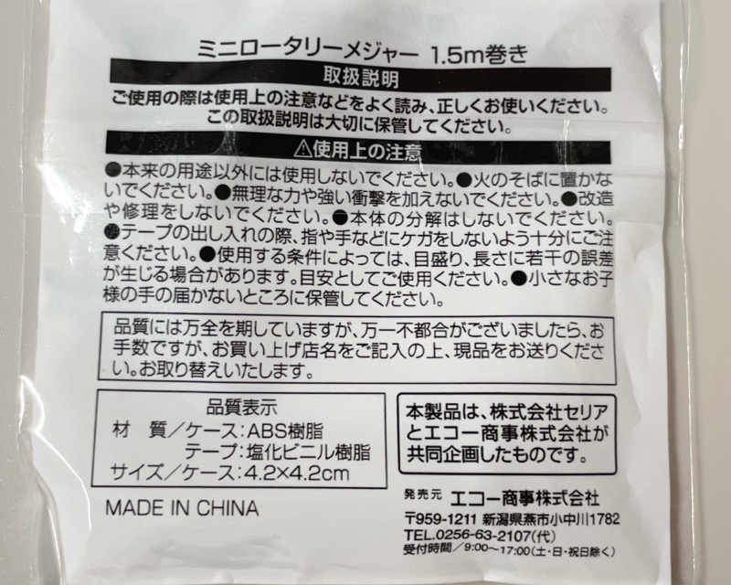 セリアの『ミニロータリーメジャー』がコンパクトでワンプッシュ巻き取りで便利!