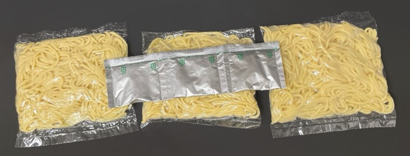 麺と粉末ソースが3個分かれて入ってます。