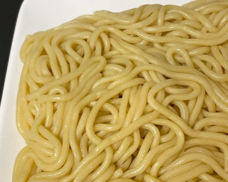 太めな麺で、ぷにっとモッチリな食感で美味しいです。