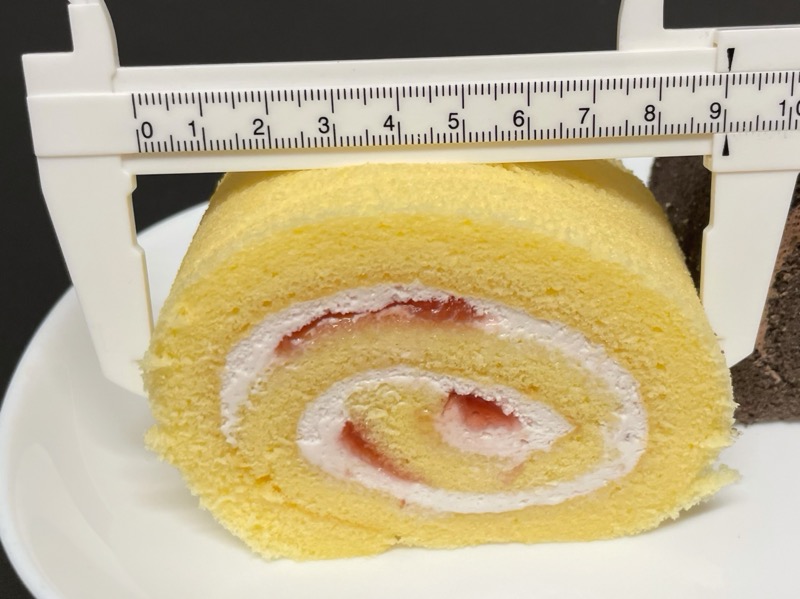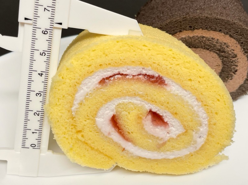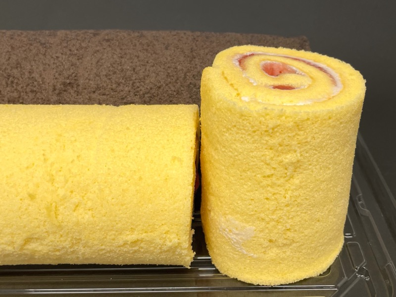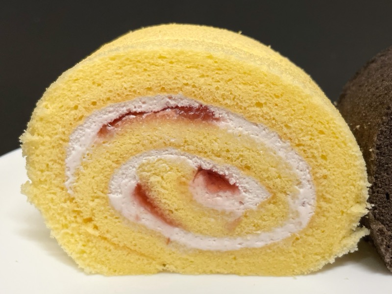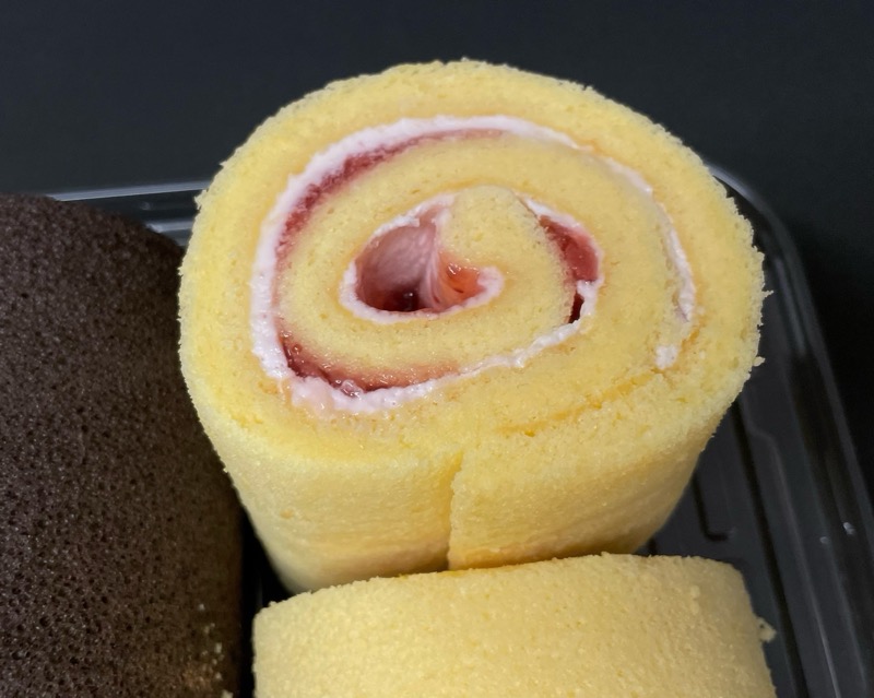 黄色い生地にはイチゴのクリームが巻いてあり、