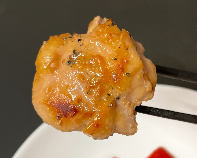 鶏もも肉に、ブラックペッパーなどで味付けがしてあるので、