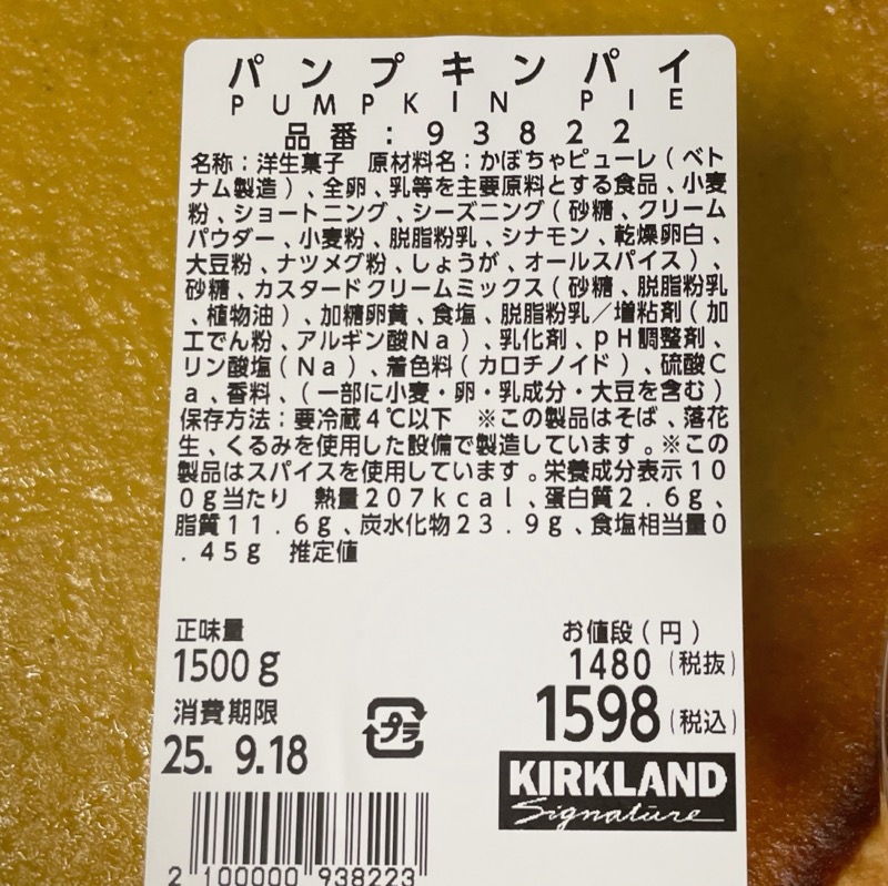 コストコの『パンプキンパイ(2025)』が今年も登場で美味しい!