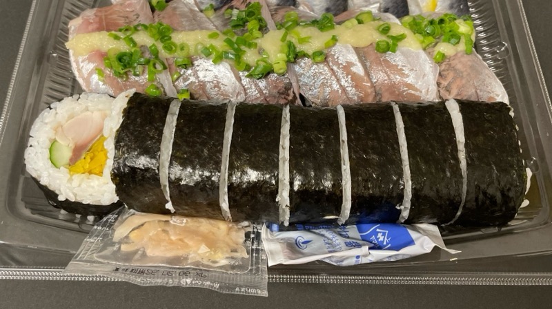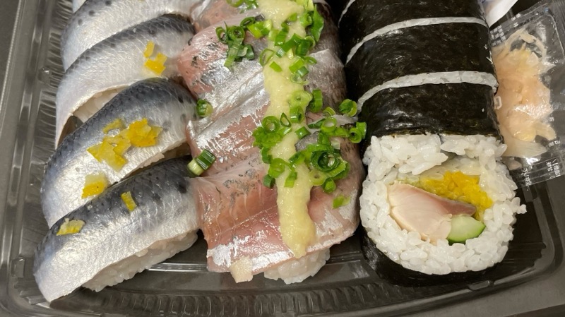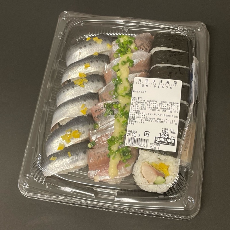 コストコの『青物3種寿司』がイワシ、真あじ、しめ鯖とたくあんの巻き寿司で美味しい!