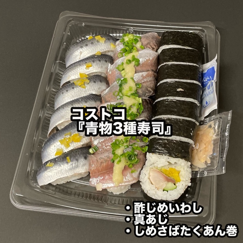 コストコの『青物3種寿司』がイワシ、真あじ、しめ鯖とたくあんの巻き寿司で美味しい!
