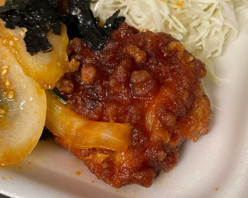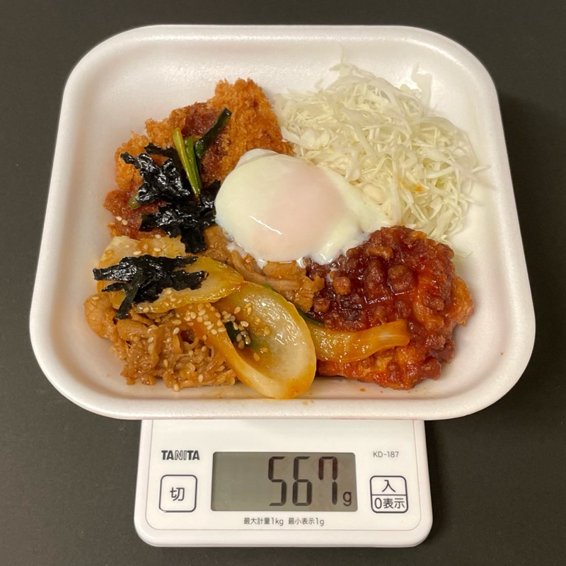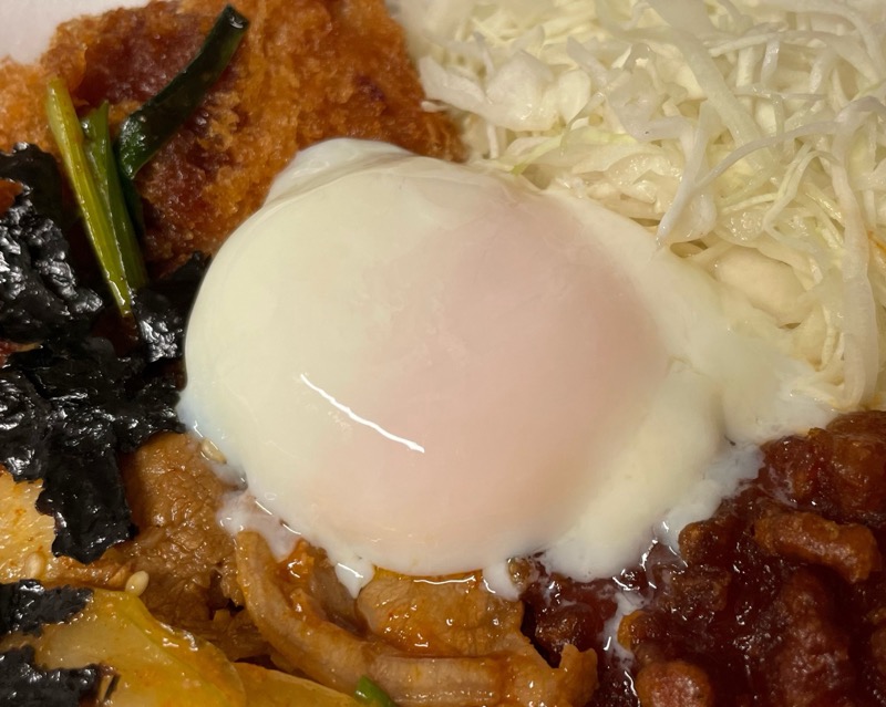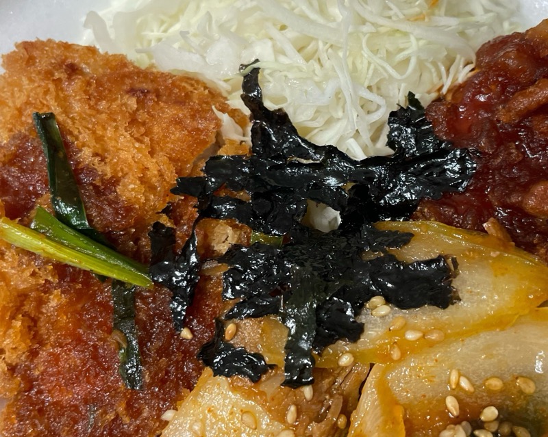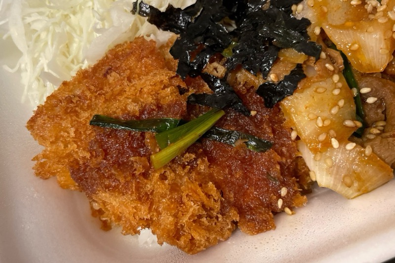 『牛豚鶏のプルコギビビンカツ丼』です。