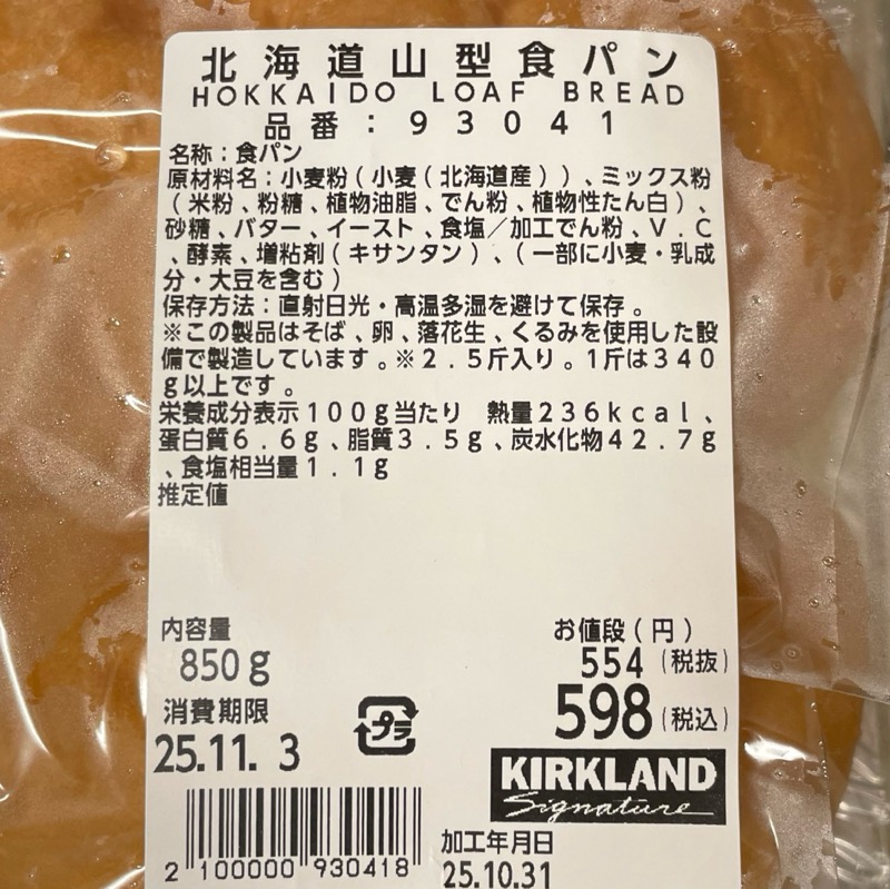 コストコの『北海道山型食パン』が ふわふわで美味しい!