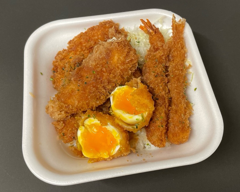 かつやの『タレカツ丼』が半熟卵、海老、鶏ささみで美味しい!