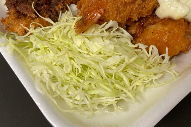 そして、カツの横には千切りキャベツも添えてあります。
