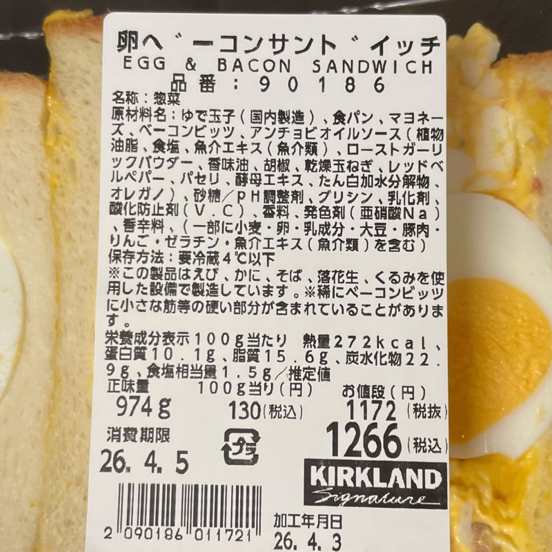 コストコの『卵ベーコンサンドイッチ』が卵に小さなベーコンたっぷり入って美味しい!