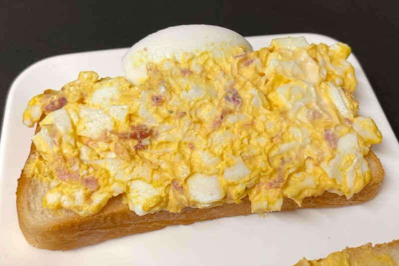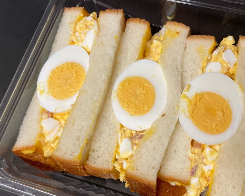 たまごサンドの中にベーコンまで入った贅沢なサンドイッチです!