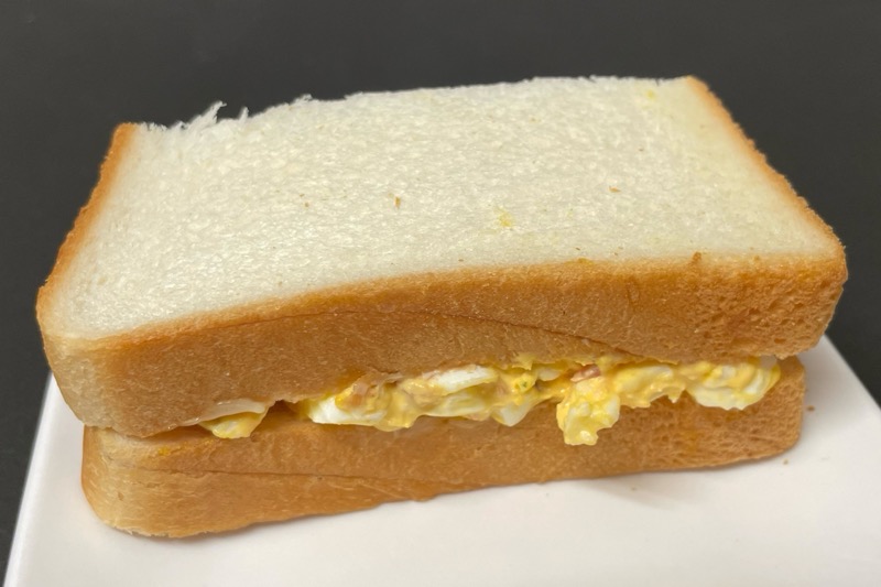 ゆで卵がつぶしてあるたまごサンドの中に、